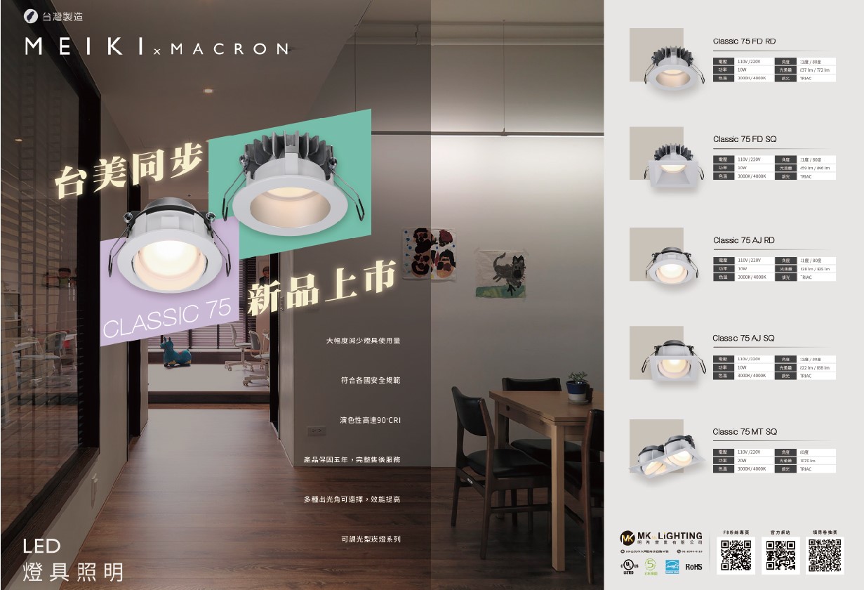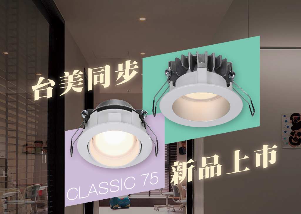 歐美同步上市CLASSIC75新系列,更新了原有CLASSIC90以及CLASS75系列版本,大幅度縮減原有的高度,出光角度由60度增加為80度角,流明數不減,外型簡約鮮明,加上快接頭設計增加安裝便利。